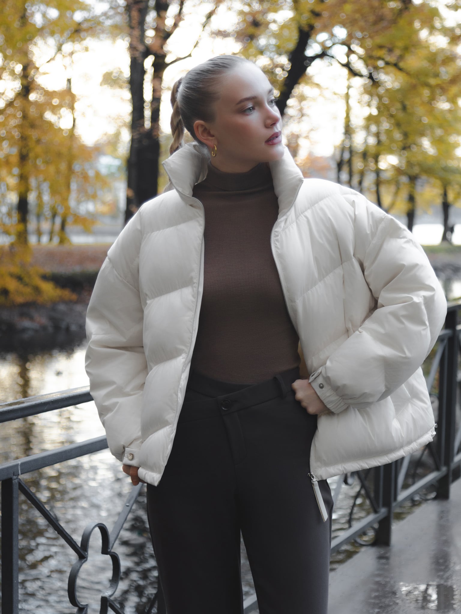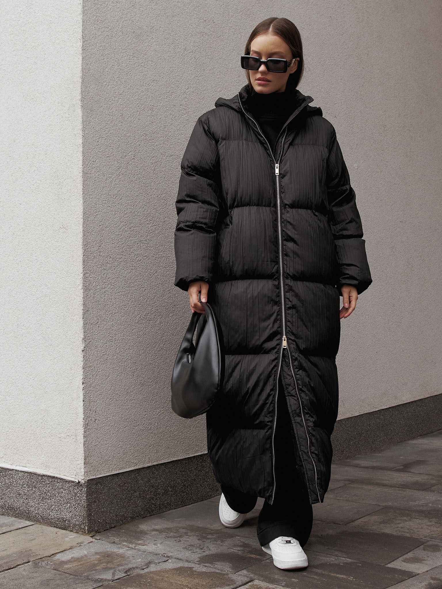 Длинный пуховик с боковой молнией-застежкой