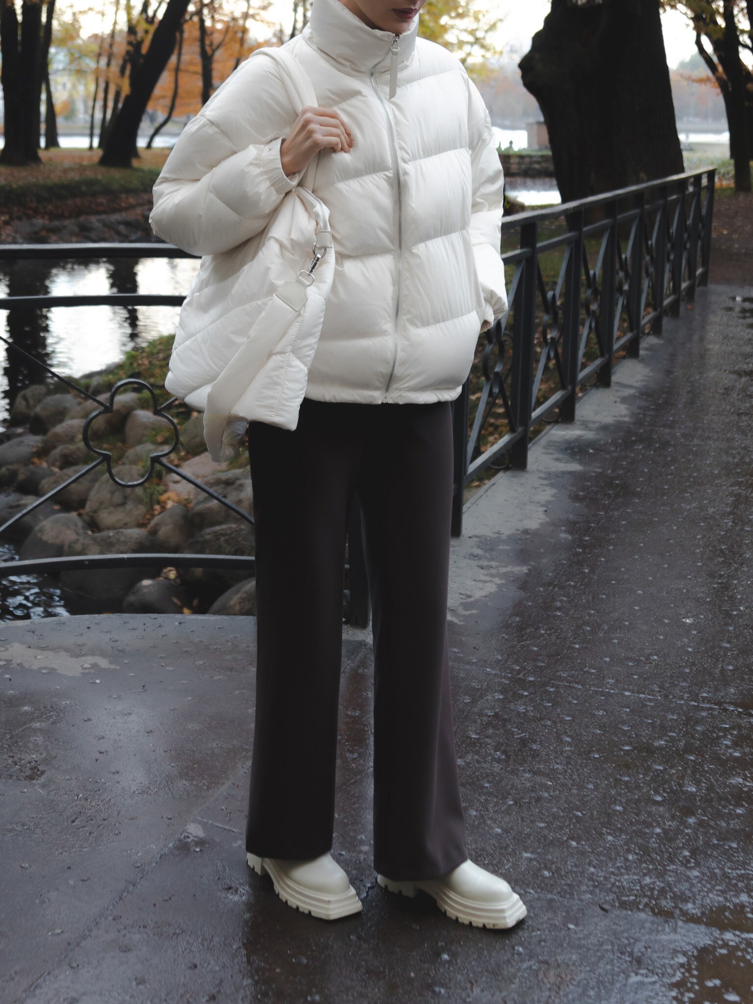 Стеганый пуховик с треугольным воротником :: LICHI