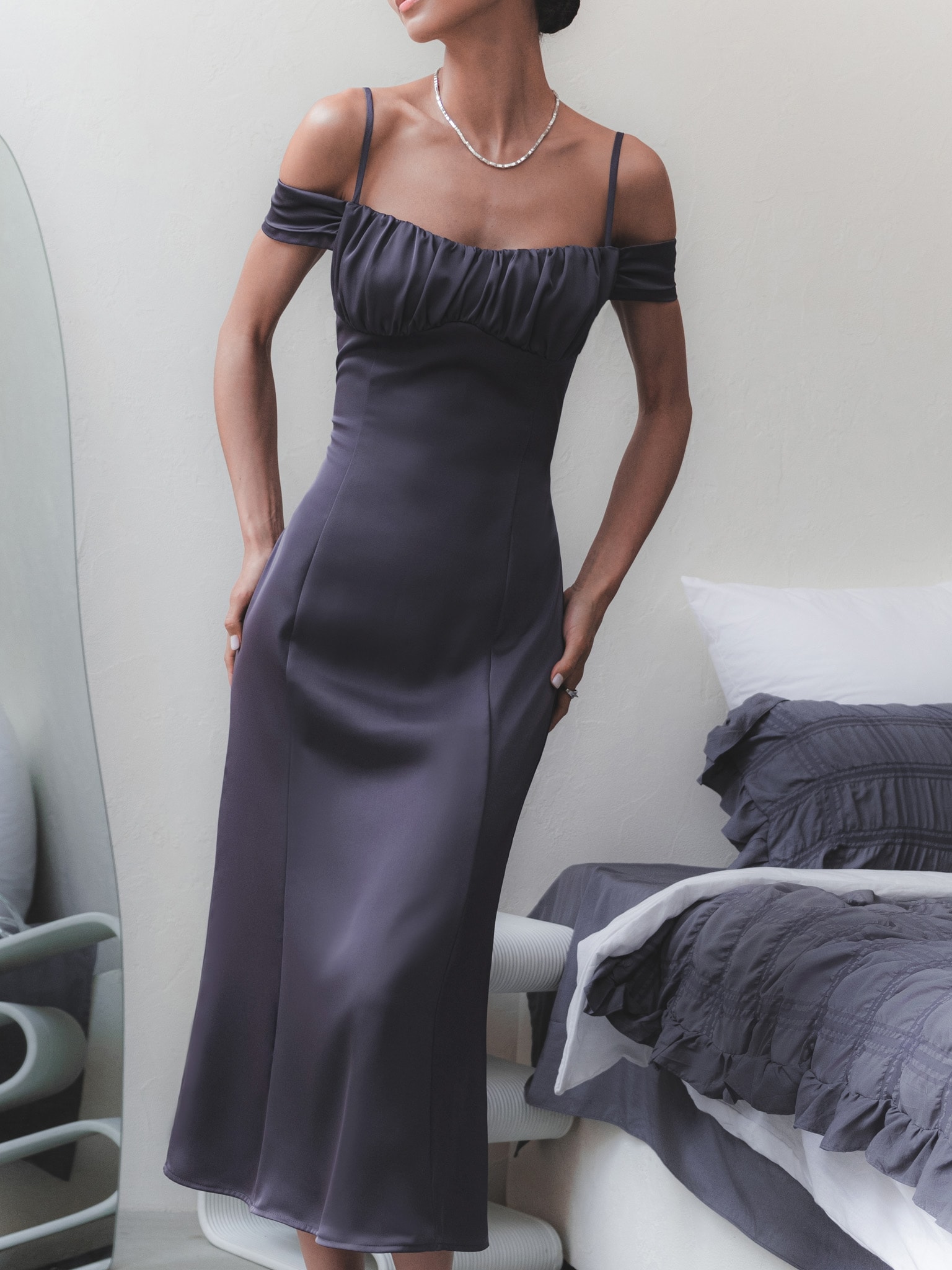 Платье миди с геометричным вырезом и объемными рукавами :: LICHI